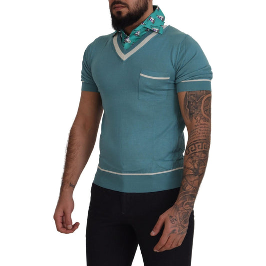قميص دولتشي آند غابانا الأنيق ذو قصة ضيقة باللون الأزرق