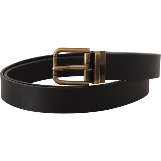 حزام جلدي أسود أنيق من دولتشي آند غابانا مع مشبك معدني عتيق