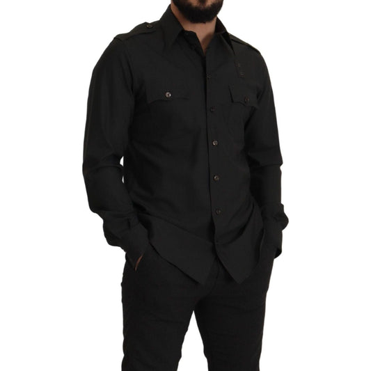 قميص دولتشي آند غابانا الأنيق المصنوع من القطن باللون الرمادي الداكن