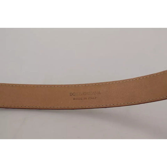 حزام دولتشي آند غابانا المصنوع من الجلد الأبيض والمزين بشعار ذهبي ومشبك معدني