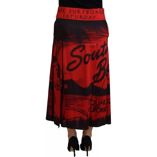 تنورة ميدي مطوية ذات خصر مرتفع من Dsquared² باللون الأحمر