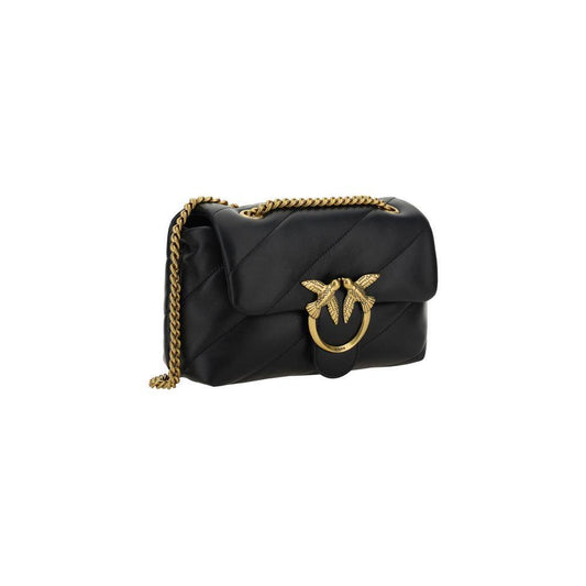 PINKO Black Calf Leather Bos Taurus Shoulder Bag