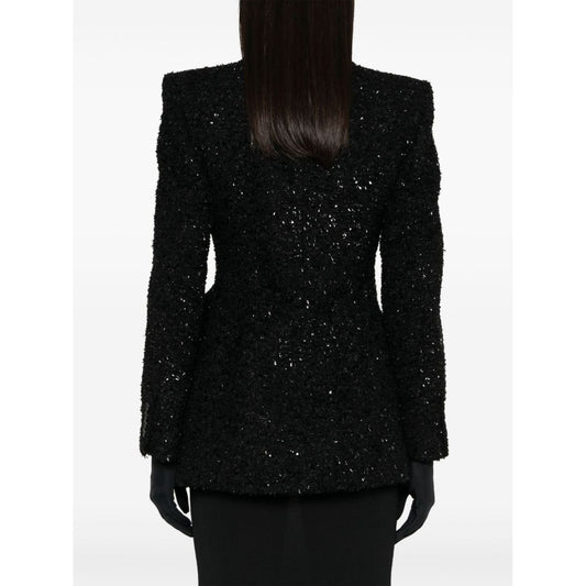 Balenciaga Hourglass tweed-texture padded-shoulder wool-blend blazer