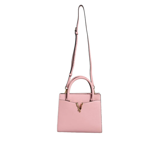 Versace Pink Grainy Calf Leather Logo Crossbody Shoulder Bag