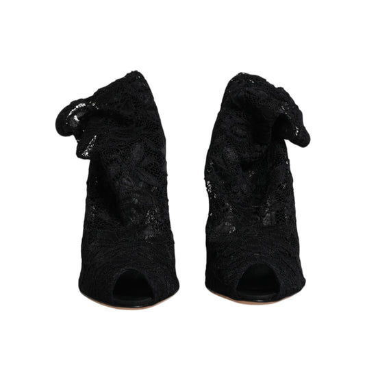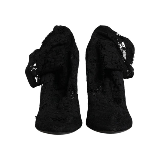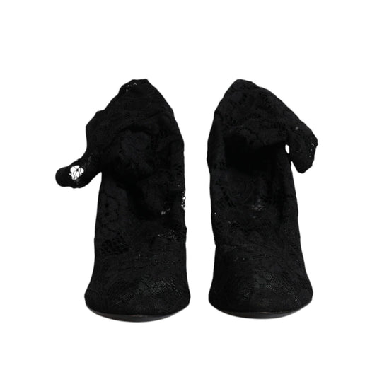 Dolce & Gabbana Black Stretch Pumps Boots Floral Lace Shoes