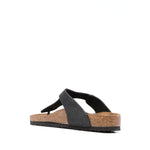 black calf leather side buckle fastening moulded footbed branded insole flat rubber sole slip-on style Gizeh oiled leather sandals Size and Fit - Regular width