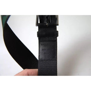 حزام دولتشي آند غابانا من الجلد الأسود والأخضر بإبزيم معدني فضي