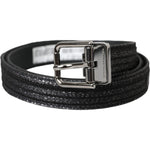 حزام دولتشي آند غابانا من الجاكار الأسود المخطط بمشبك معدني فضي