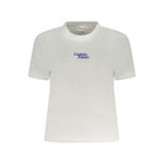 Embrace effortless sophistication with Calvin Klein’s pristine white T-shirt. Defined by its crisp crew neck and striking logo print, this short sleeve top marries casual charm with iconic brand identity. Tailored from premium cotton for unrivaled comfort, it’s a testament to timeless style and quality craftsmanship. Perfect for any wardrobe seeking a touch of designer flair.