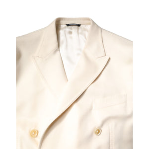 Dolce & Gabbana Beige Cashmere Double Breasted Coat Blazer