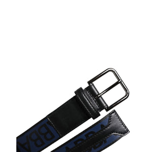 Dolce & Gabbana Black Blue Polyester Printed Metal Buckle Belt
