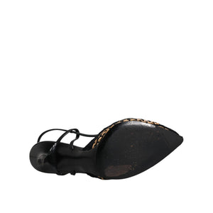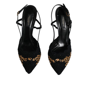 Dolce & Gabbana Black Brown Lace High Heels Slingback Shoes