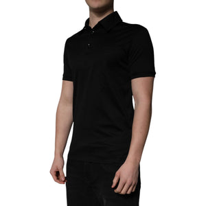 Dolce & Gabbana Black Cotton Collared Polo T-shirt