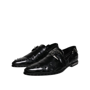Dolce & Gabbana Black Embellished Derby Monk Strap Shoes