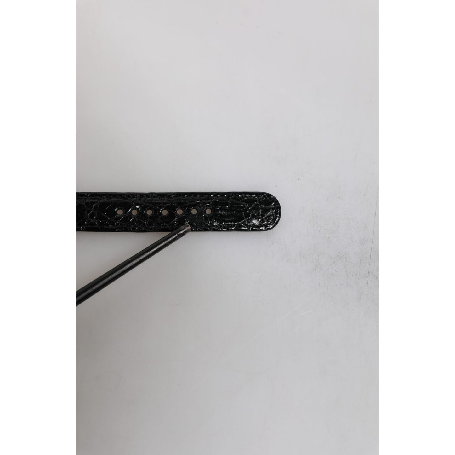 Dolce & Gabbana Black Exotic Leather Gold Tone Metal Buckle Armband