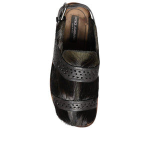 Dolce & Gabbana Black Gazelle Hair Leather Flats Sandals Shoes