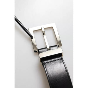 • Dolce & Gabbana Black Leather Beige Strap Silver Metal Buckle Belt