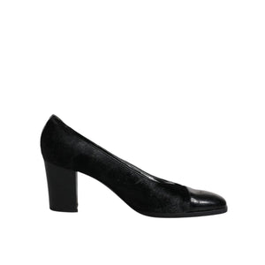 Dolce & Gabbana Black Leather Block Heels Pumps Shoes