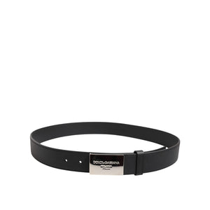 Dolce & Gabbana Black Leather Classic Metal Logo Buckle Belt