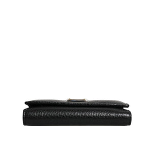 Dolce & Gabbana Black Leather Gold Metal Logo Plaque Trifold Keyring