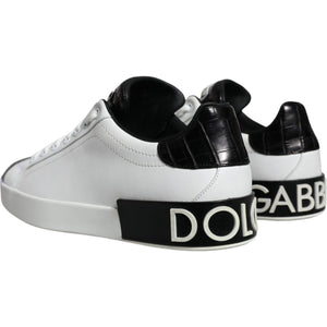 Dolce & Gabbana Black Leather Logo Portofino Sneaker Shoes