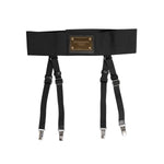 Dolce & Gabbana Black Leather Logo Wide Waist Belt Suspender