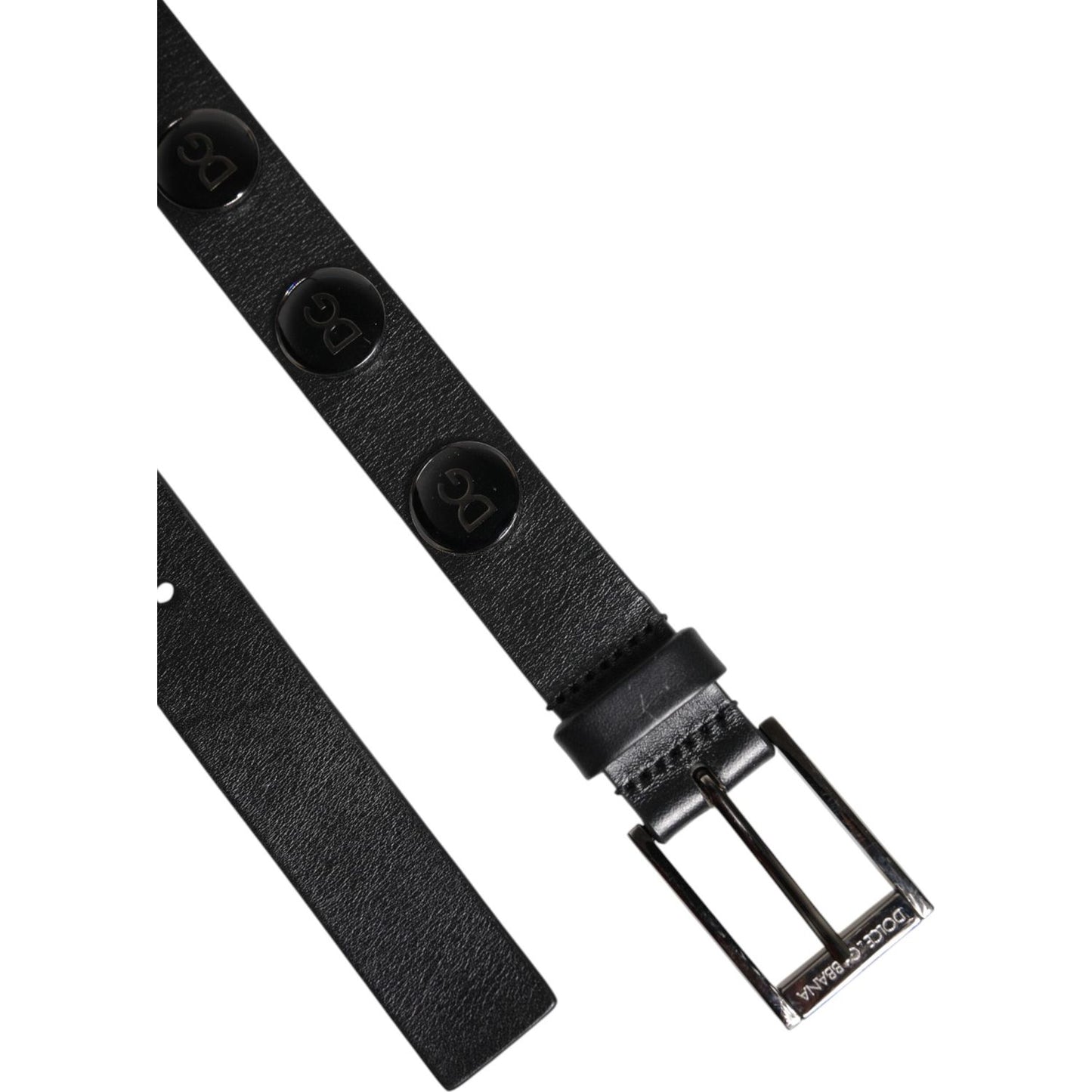 Dolce & Gabbana Black Luxury Leather DG Studs Buckle Belt