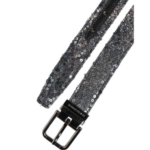 Dolce & Gabbana Black Sequins Silver Metal Logo Buckle Belt