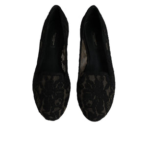 Dolce & Gabbana Black Taormina Lace Slip On Flats Shoes
