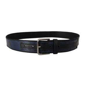 حزام دولتشي آند غابانا أزرق وأسود بطبعة شعار ومشبك فضي