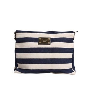 • Dolce & Gabbana Blue White Stripes Logo Plaque Tote Bag