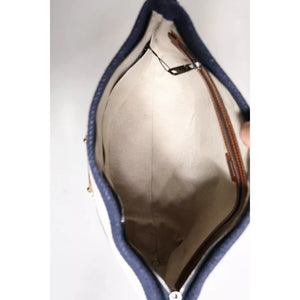 Dolce & Gabbana Blue White Stripes Logo Plaque Tote Bag