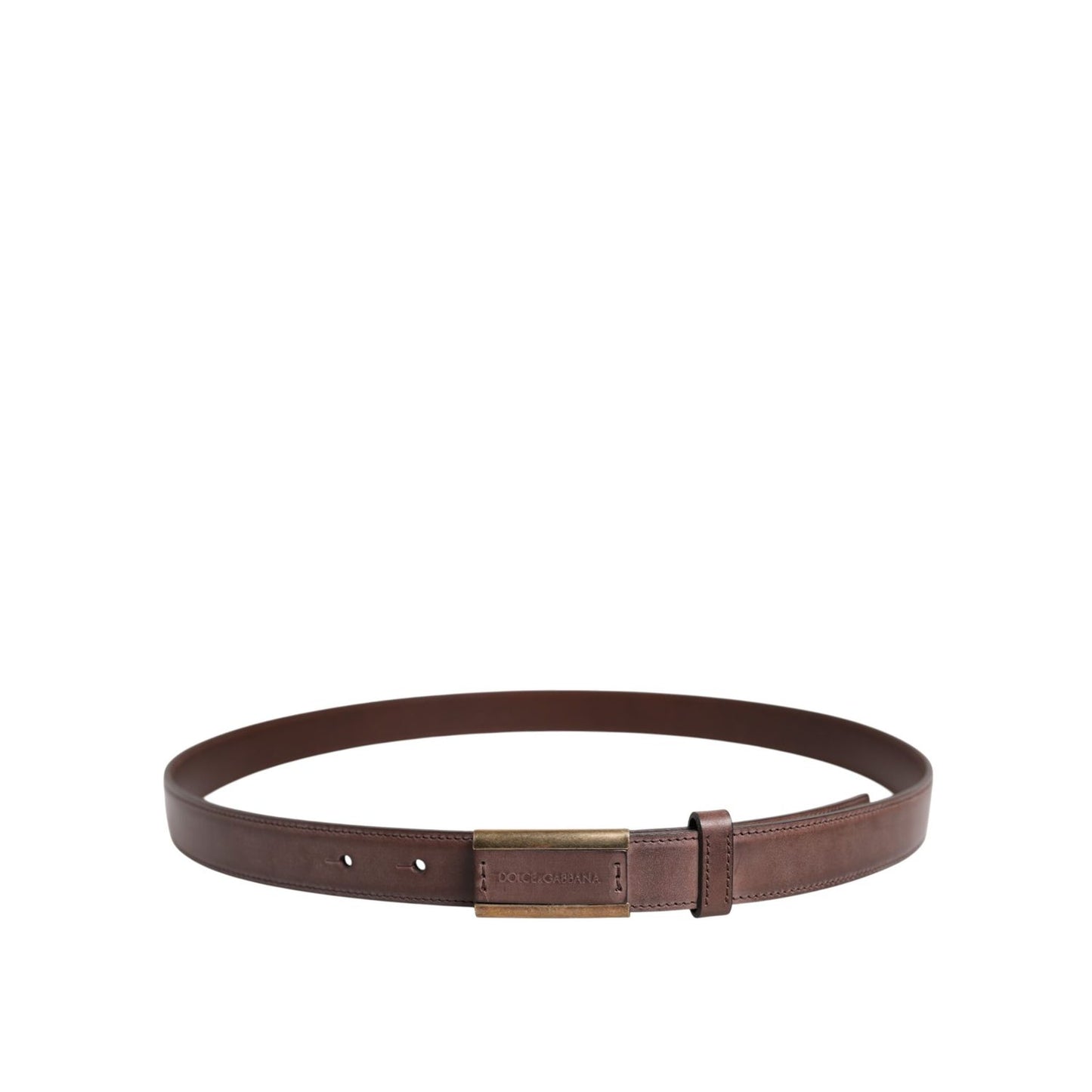 Dolce & Gabbana Brown Calf Leather Antique Buckle Belt