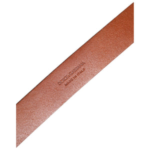 Dolce & Gabbana Brown Leather Gold Metal Baroque Buckle Belt