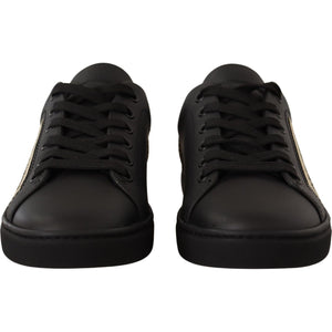 Dolce & Gabbana Black Gold Leather Low Top Sneakers Womens Shoes