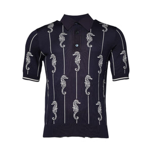 Dolce & Gabbana Dark Blue Sea Horse Collared Polo T-shirt