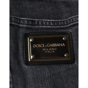 Dolce & Gabbana Dark Gray Tattered Cotton Skinny Denim Jeans