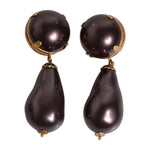 Dolce & Gabbana Gold Brass Black Pearl Clip On Dangling Jewelry Earrings