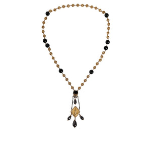 Dolce & Gabbana Gold Chain Brass Black Beaded Rosary Style Necklace