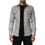 Dolce & Gabbana Gray Coated Cotton Snap Button Logo Men Shirt