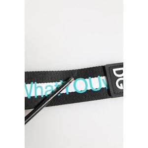 features a durable red polyester strap accented with the bold DG logo, paired with sleek silver-tone brass hardware. A stylish and practical accessory that adds a designer touch to your daily essentials.