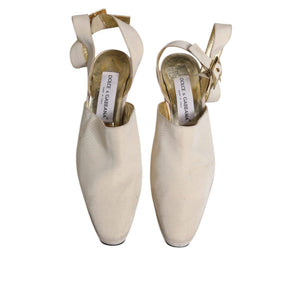 Dolce & Gabbana Off White Block Heels Slingback Sandals Shoes