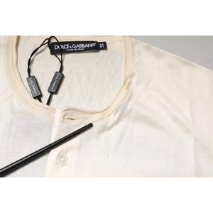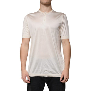 Dolce & Gabbana Off White Silk Crew Neck Henley T-shirt