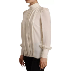 Dolce & Gabbana Off White Silk Long Sleeve Turtle Neck Top