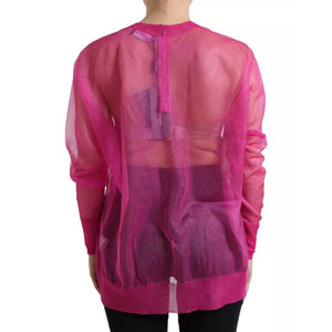 Dolce & Gabbana Pink Sheer Long Sleeves Crewneck Top Blouse