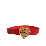 Dolce & Gabbana Red Calf Leather Embellished Metal Buckle Belt