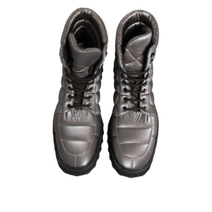 Dolce & Gabbana Silver Padded Mid Calf Lace Up Boots Shoes
