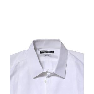 Dolce & Gabbana White Bib Cotton Poplin GOLD Men Formal Shirt