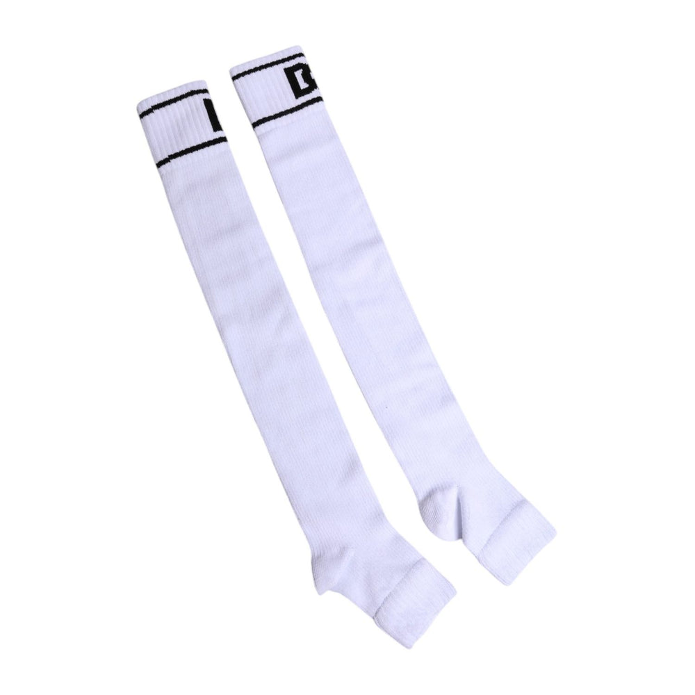 Dolce & Gabbana White Cotton DG Logo Print Open Toe Socks