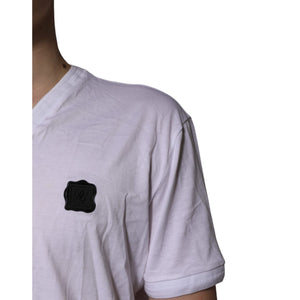 Dolce & Gabbana White Cotton Logo Patch V-neck Tee T-shirt